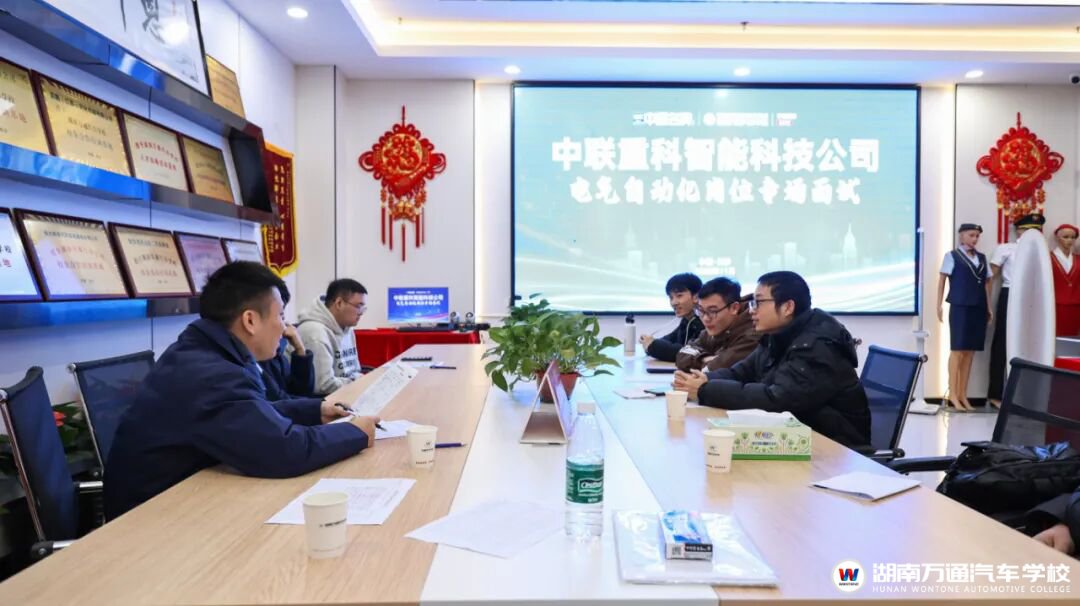 近 日,湖南万通创就业指导中心气氛热烈 ——中联重科智能科技公司电气自动化岗位专场面试正式开启!作为全球工程机械巨头(A+H 股上市,总资产超 1287 亿元),中联重科携核心岗位进校园,为我校学子搭建直通名企的就业桥,也是双方深化校企合作的又一实践。