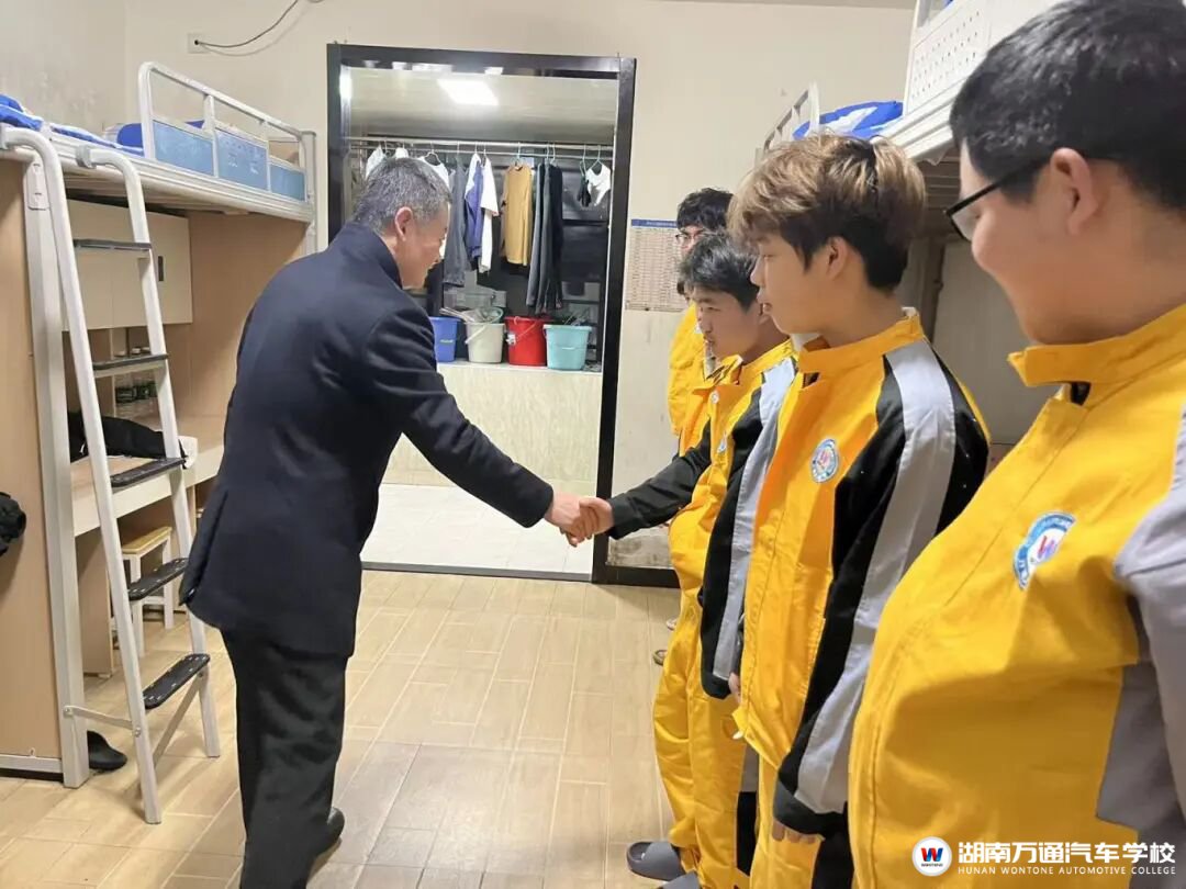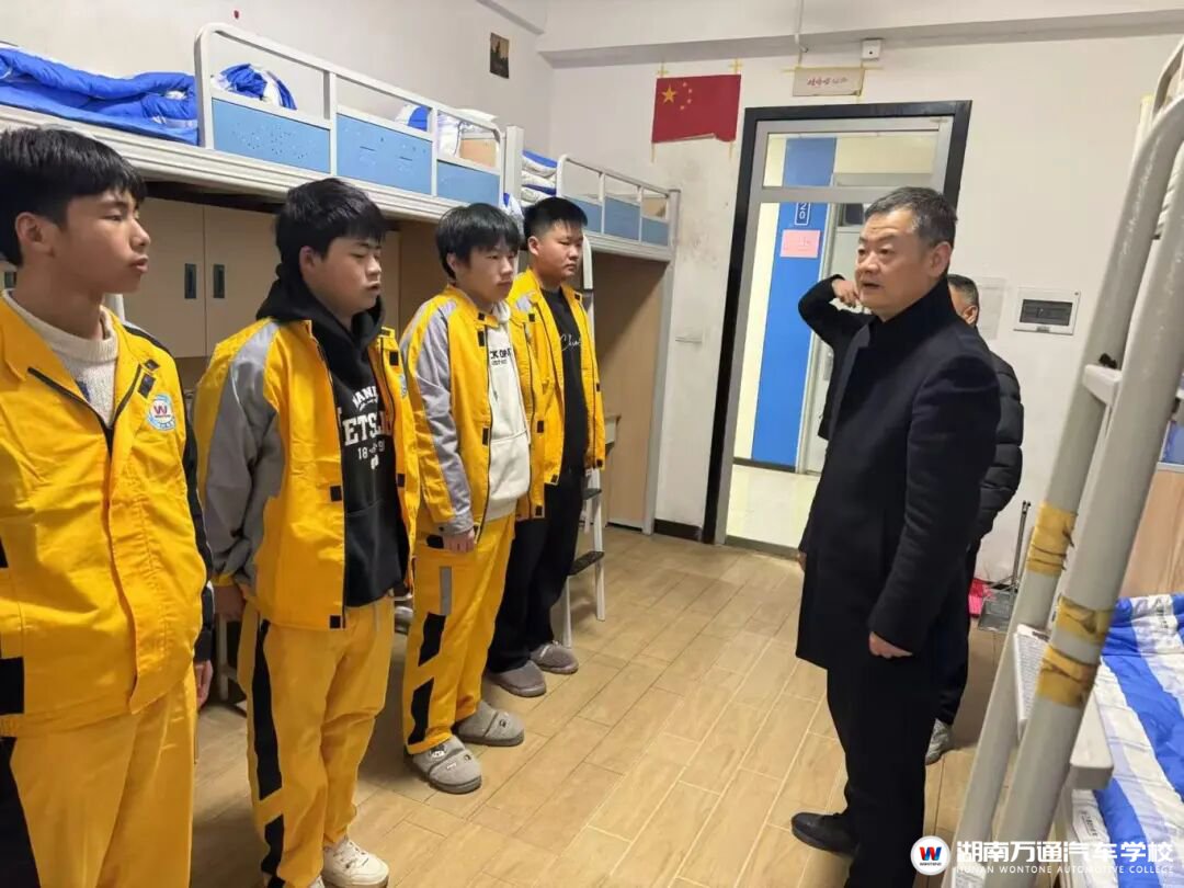 为深入了解新生入校后的生活适应情况,倾听同学们的心声,3月2日晚间,湖南万通李迎春校长带领学校领导及老师,走进新生宿舍,与同学们面对面交流,把关怀送到每一位新同学的身边。