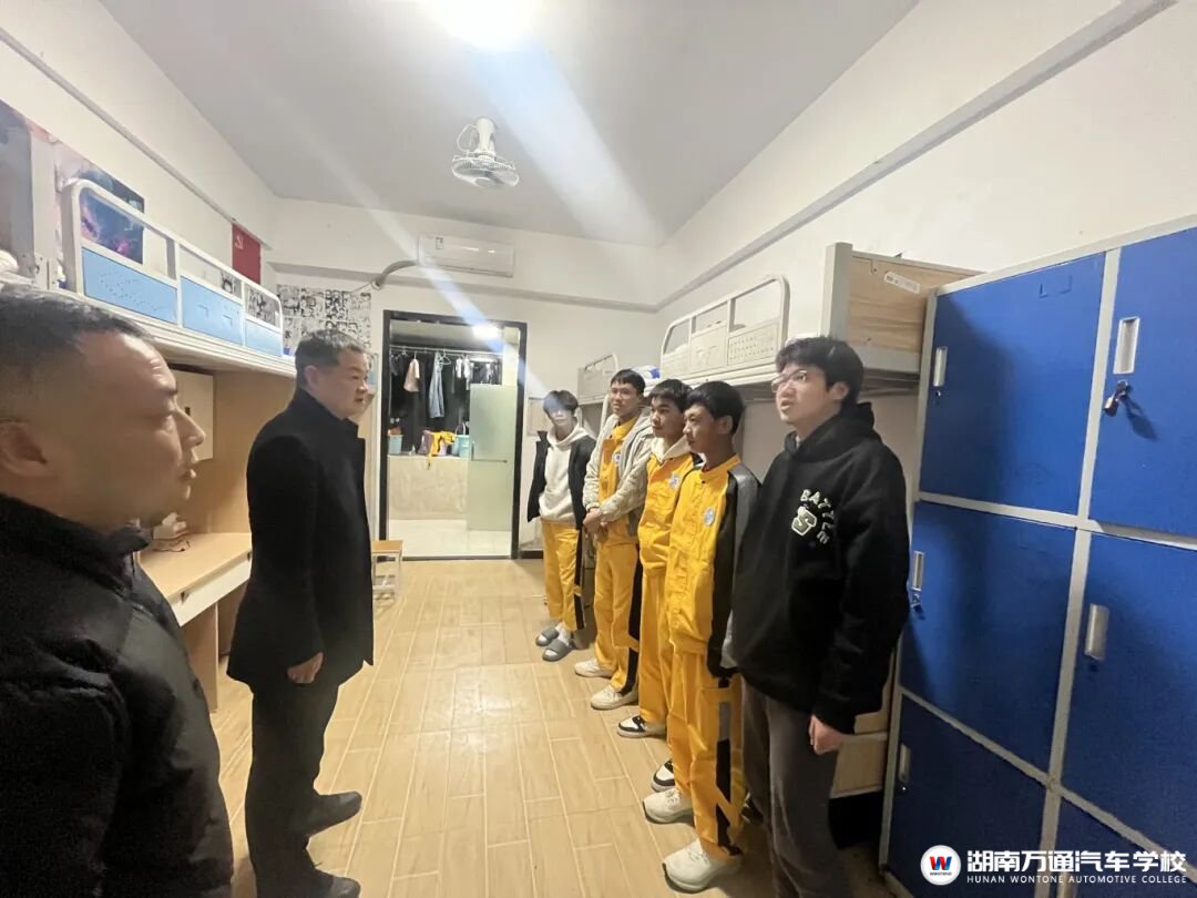 一间间宿舍走过,一句句问候送达。希望这场温暖的相遇,让初入校园的你,在湖南万通感受到温暖与安心~