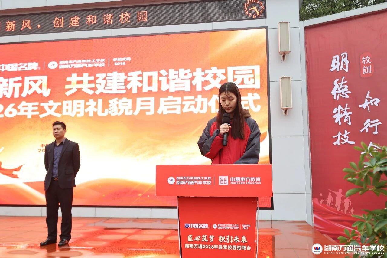 活动现场,校长助理张助出席并发表讲话。他表示,“校风正,则学风浓;文明兴,则校园暖”,学校始终以严谨管理筑牢文明根基,把文明礼仪教育融入课堂、宿舍、教室的每一处,希望学子们从小事做起,让文明成为万通人的鲜明标签。
